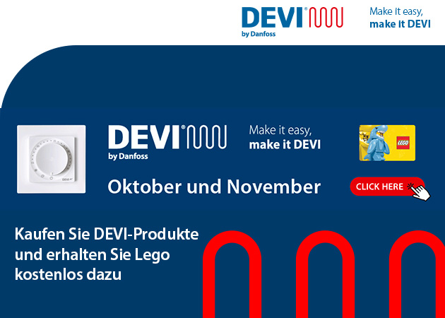 Kaufen Sie DEVI-Produkte und bekommen Sie kostenlos LEGO dazu. Dänische Qualität erleben. Installieren Sie DEVI und Sie erhalten LEGO Gutscheine.