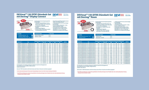 Ab sofort erhältlich – die Sets mit unseren neuen Thermostaten DEVIreg™ Room bzw. DEVIreg™ Display Connect in Verbindung mit unseren bewährten Heizmatten.