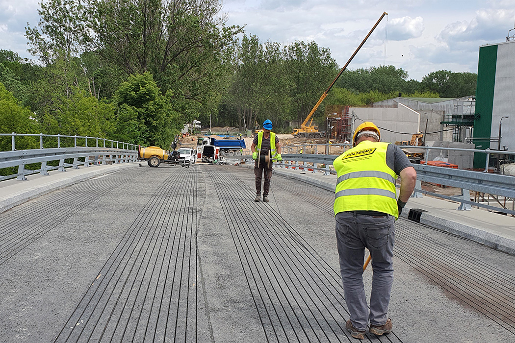 Um das Gewicht schwerer Fahrzeuge während der Installation zu berücksichtigen, wurden die Heizkabel in 2 cm tiefen und 1 cm breiten Schlitzen im Asphalt-Unterbau verlegt und mit flüssigem Asphalt aufgefüllt. Anschließend wurde eine abschließende Asphaltdeckschicht aufgebracht. Mit einer Leistung von 400 W/m² (auf ungedämmtem Unterbau) sorgt das System auch unter hoher Belastung für eine schnelle und zuverlässige Schnee- und Eisfreiheit.